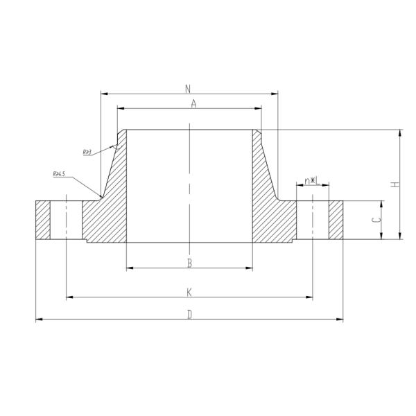 The weld neck flange (WN) is a highly versatile and widely utilized flange type, designed with a long, tapered hub that ensures a robust and seamless connection to pipes.